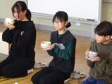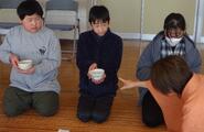 6年児童は、半分ずつに分かれ、茶の湯の作法を実際に体験しながら、和菓子やお茶をいただいたり、お茶を点てて友達にふるまったりしました。児童にとっては、鎌倉時代から伝わるという「抹茶」を使った茶道を体験する、また客人に対する「おもてなしの心」を体現する礼儀作法について学ぶ、大変貴重な機会となりました。