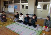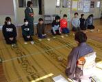 2/13(金)に、講師の先生方をお招きし、3~6校時に「日本文化体験」を行いました。集会室に、畳に見立てたゴザを敷き、鉄瓶でお湯を沸かし、正座をしながらの本格的な❝茶の湯体験❞でした。