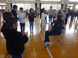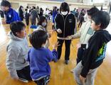 体育館で、児童は縦割り班ごとに分かれて、来校していただいたボランティアの方々と、互いに自己紹介をしたり、楽しいゲームをしたりして交流しました。また、感謝の気持ちを込めて、みんなで「ありがとうの花」を歌いました。笑顔いっぱいの素敵な会になりました。