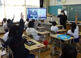 児童は、お話を聞きながら、タブレットを操作し、バイキング形式の食事を摂る際の注意点について、学習しました。