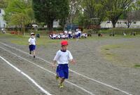 学年ごとのスタート位置に集まり、全体で準備運動をした後、各自のペースで走りました。1年生は、見学でした。